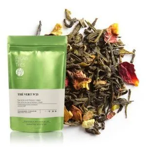 Зеленый чай № 25 – чай из Китая с нотами цитрусовых, розы, миндаля и специй. Чай прекрасно сочетает тепло цитрусовых и специй со свежестью зеленого чая.